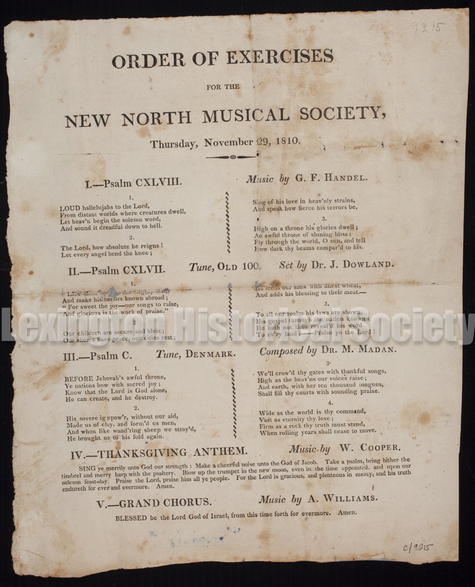 Program, "Order of Exercises for the New North Musical Society," November 29.