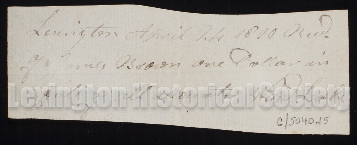 Collection of twenty—two receipts signed by Lexington residents. Many are made out to James Brown.